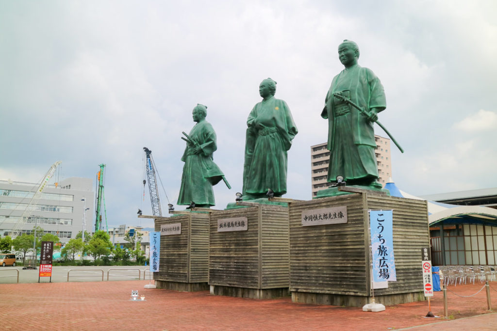駅前にある「こうち旅広場」には、人気のフォトスポット「三志士像」の姿が。