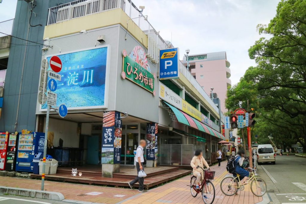「はりまや橋」から徒歩約10分で辿り着いたのは、活気あふれる「ひろめ市場」。