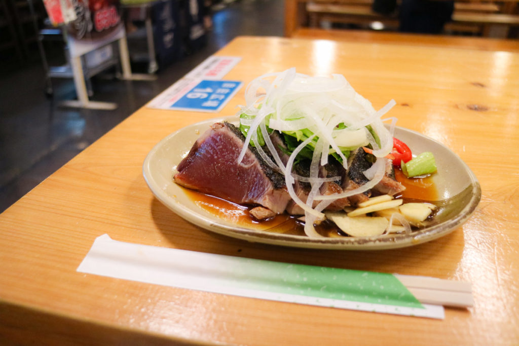 ふらりと立ち寄ったお店で注文したのは、高知グルメの代表格「かつおのたたき」。