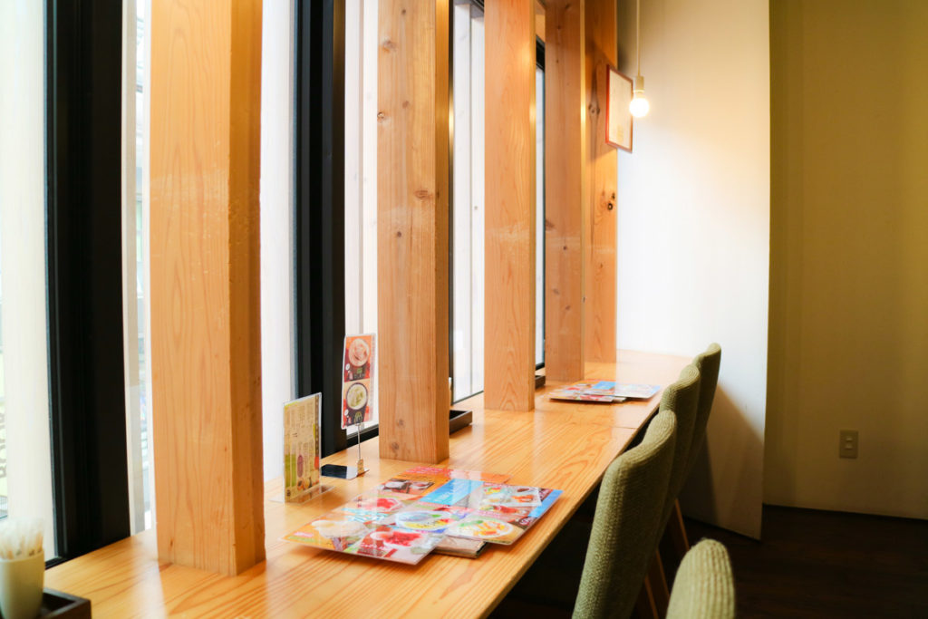 店内は、木の木目を活かした癒しの空間。