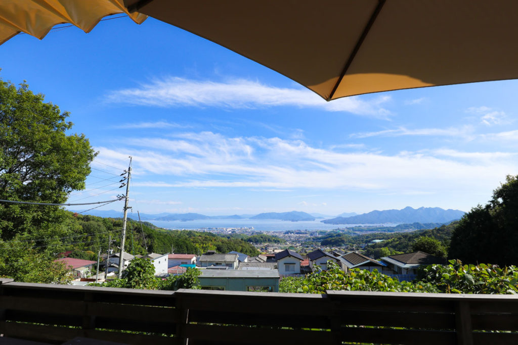 高台に位置しているので、テラス席からは瀬戸内海や島々を見渡すことができる。