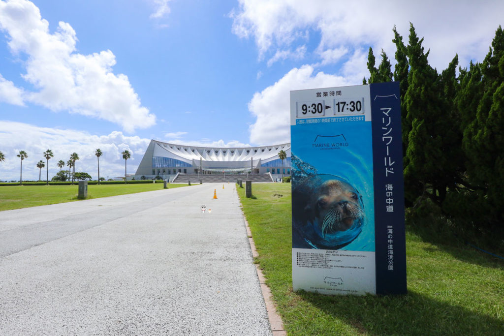 JR「海ノ中道駅」から、歩いて約5分ほどで「マリンワールド海の中道」前に到着。