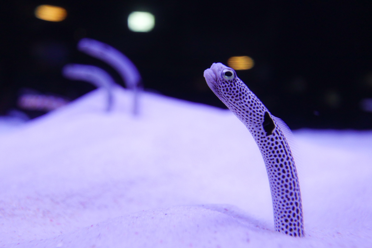 砂からにょきっと姿を見せる、水族館の人気者・チンアナゴ。