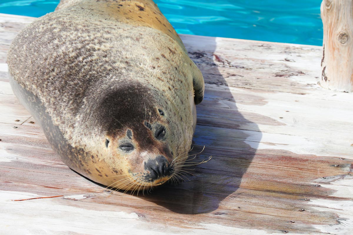 水族館の癒し系・ゴマフアザラシのプールも忘れずに。