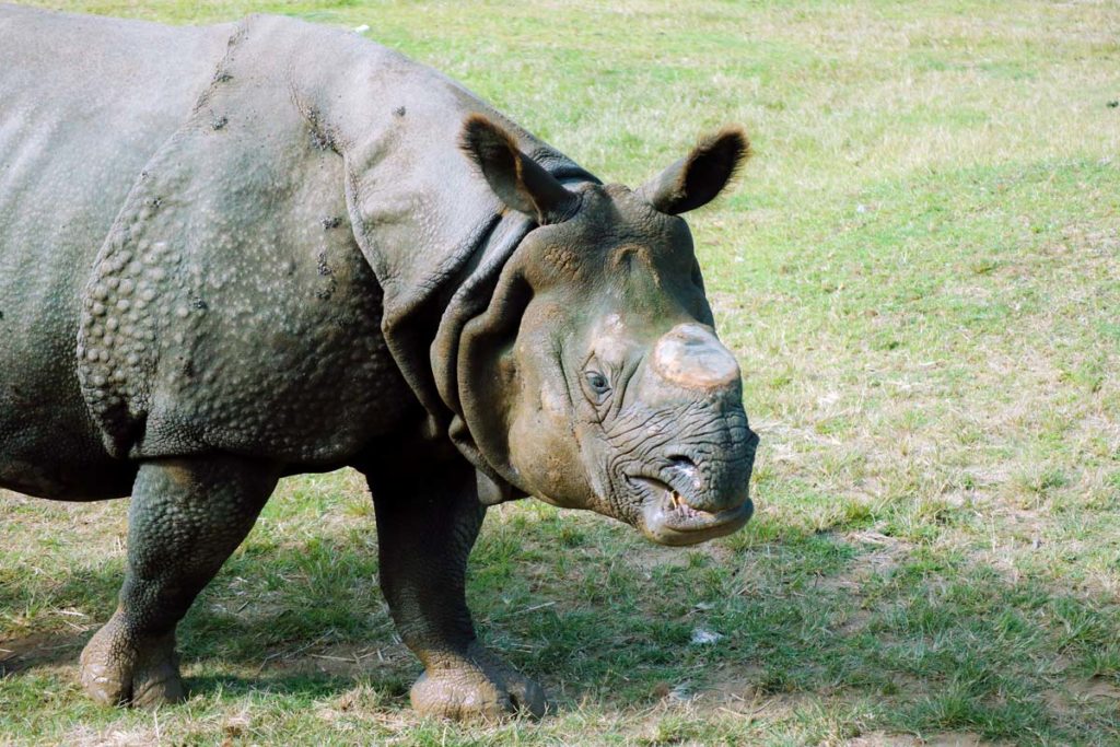 優しい小さな瞳がかわいいインドサイ。