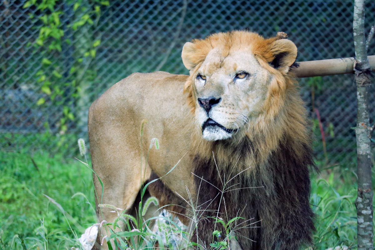 ライオンの目の前にねこじゃらし…。