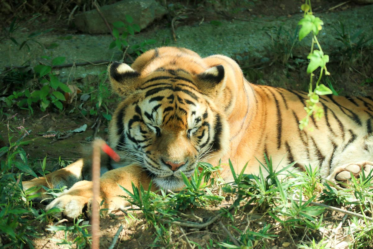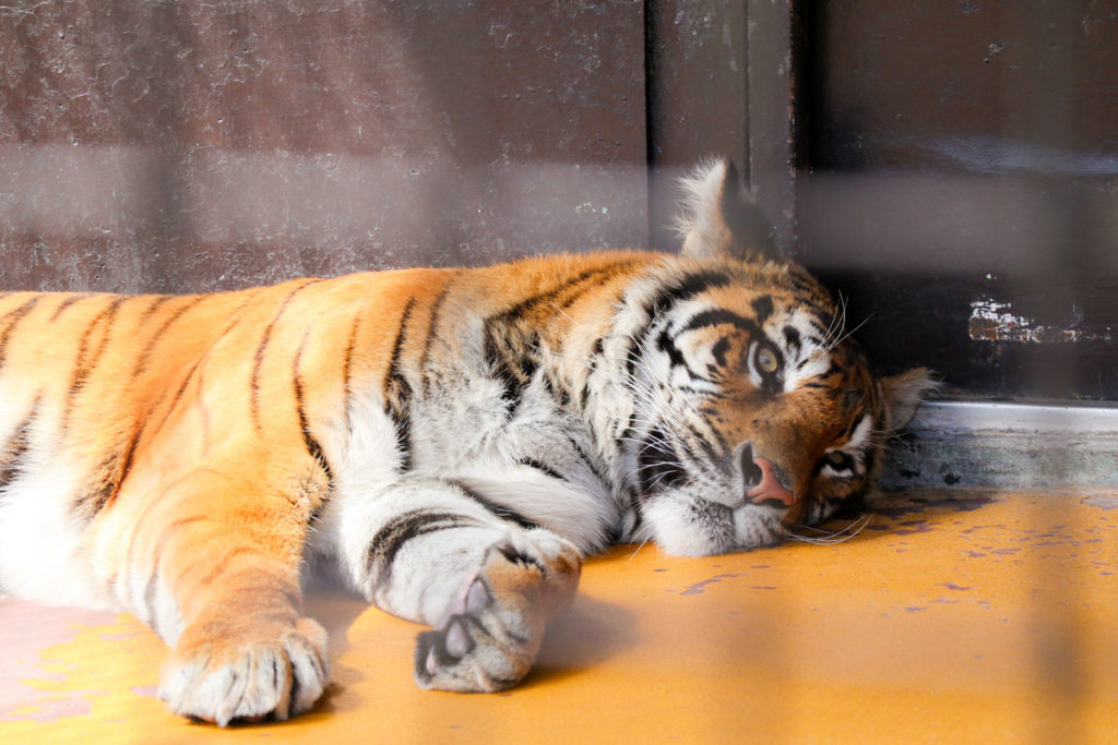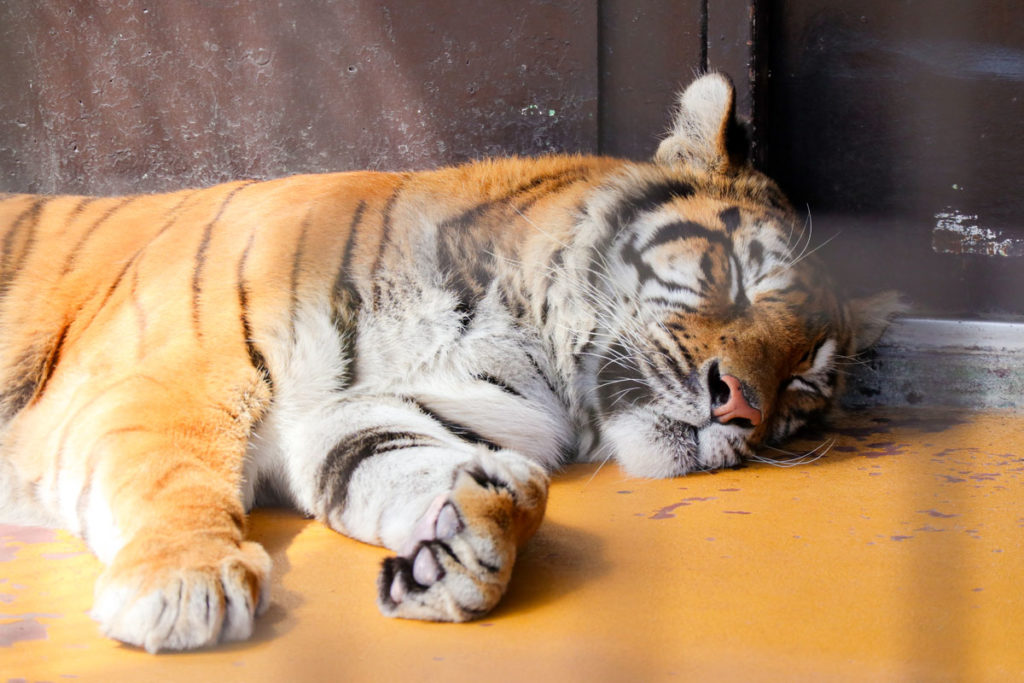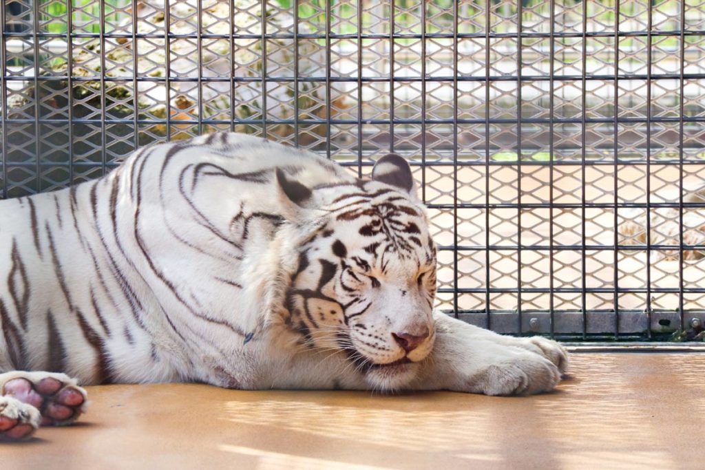 珍しいホワイトタイガーも!目の前でお昼寝中のトラたちにご対面