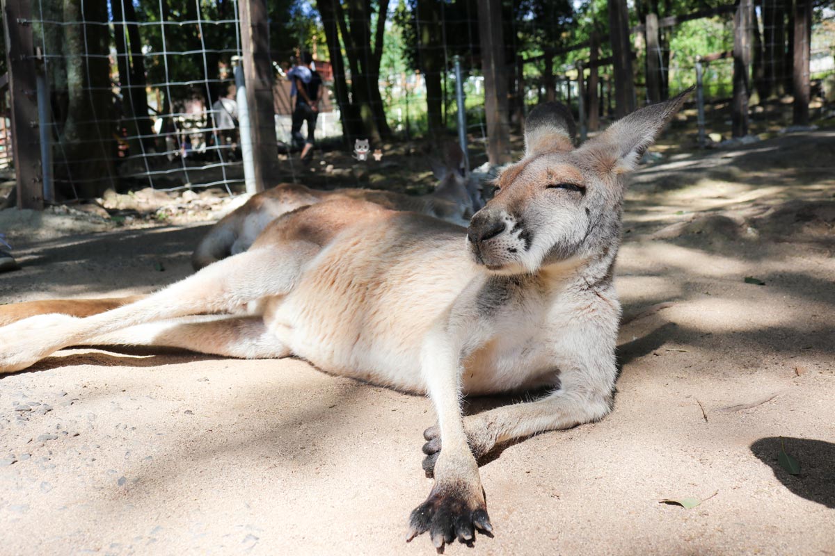 柵の内側で直接ふれあえる「カンガルーフィールド」にて。