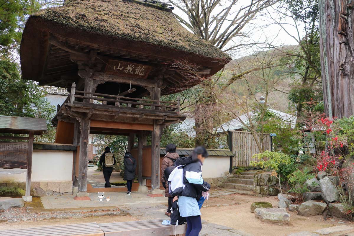 最初に出迎えてくれたのは、昔懐かしい茅葺き屋根の山門。