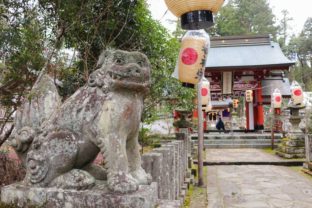 神門の前には、神社を守護する狛犬の姿が。