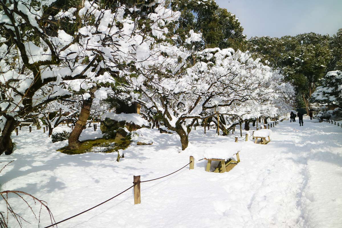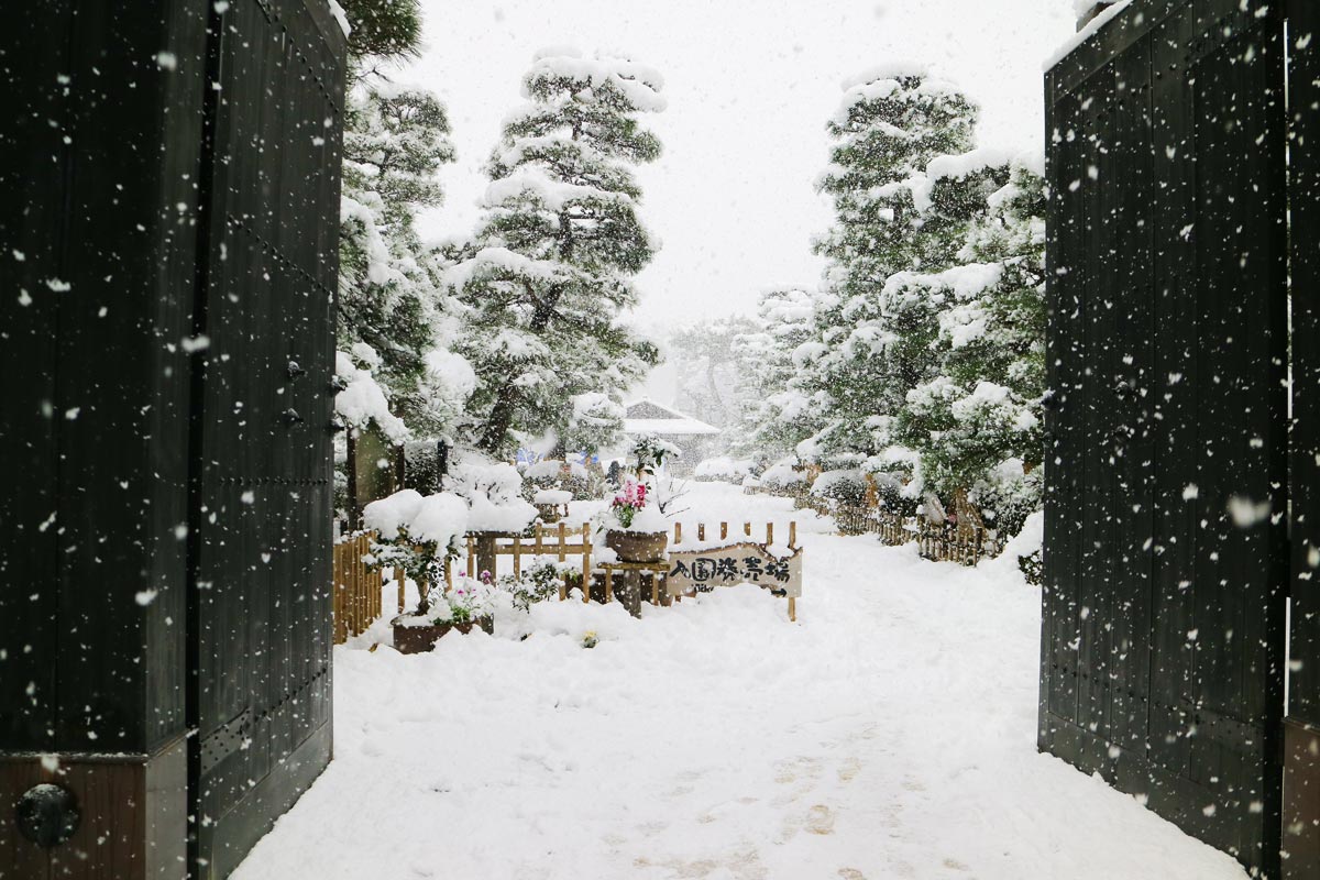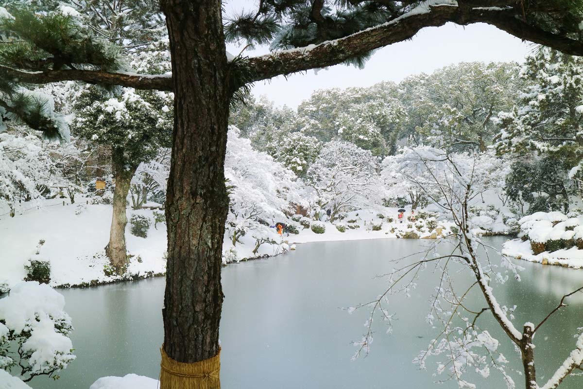 「縮景園」の門の先には、息を呑むような雪景色が広がる…!