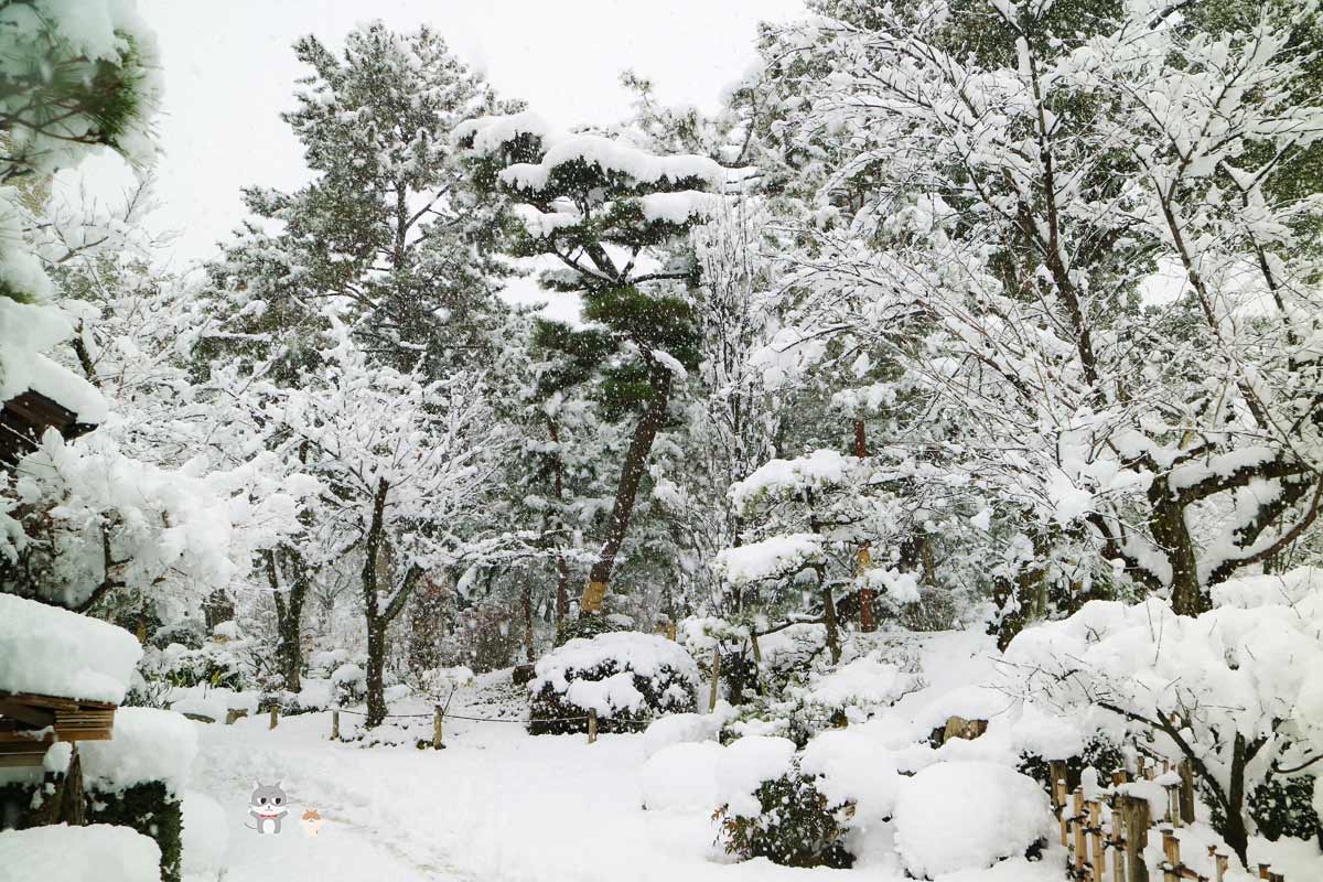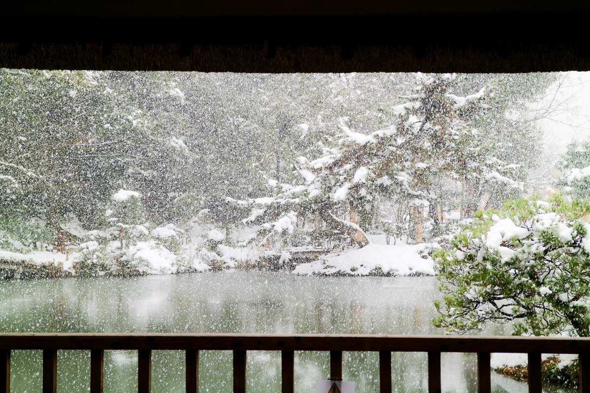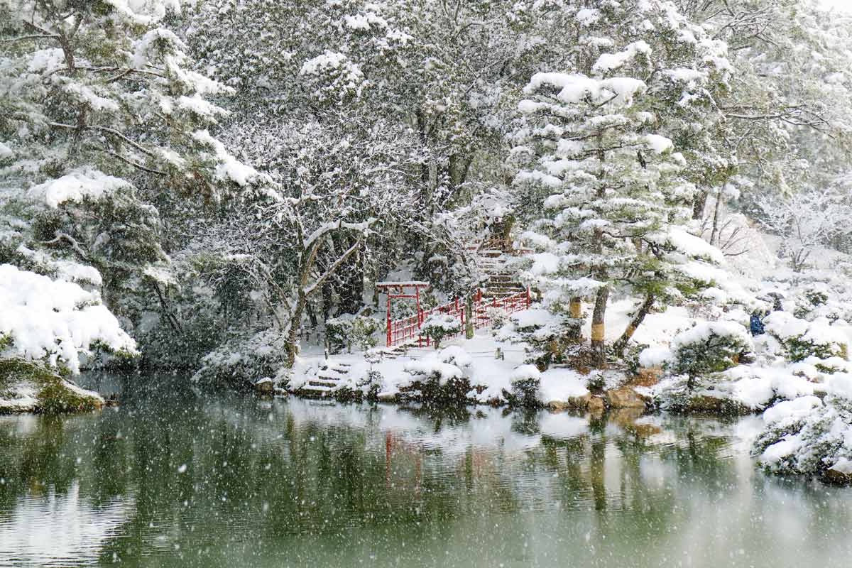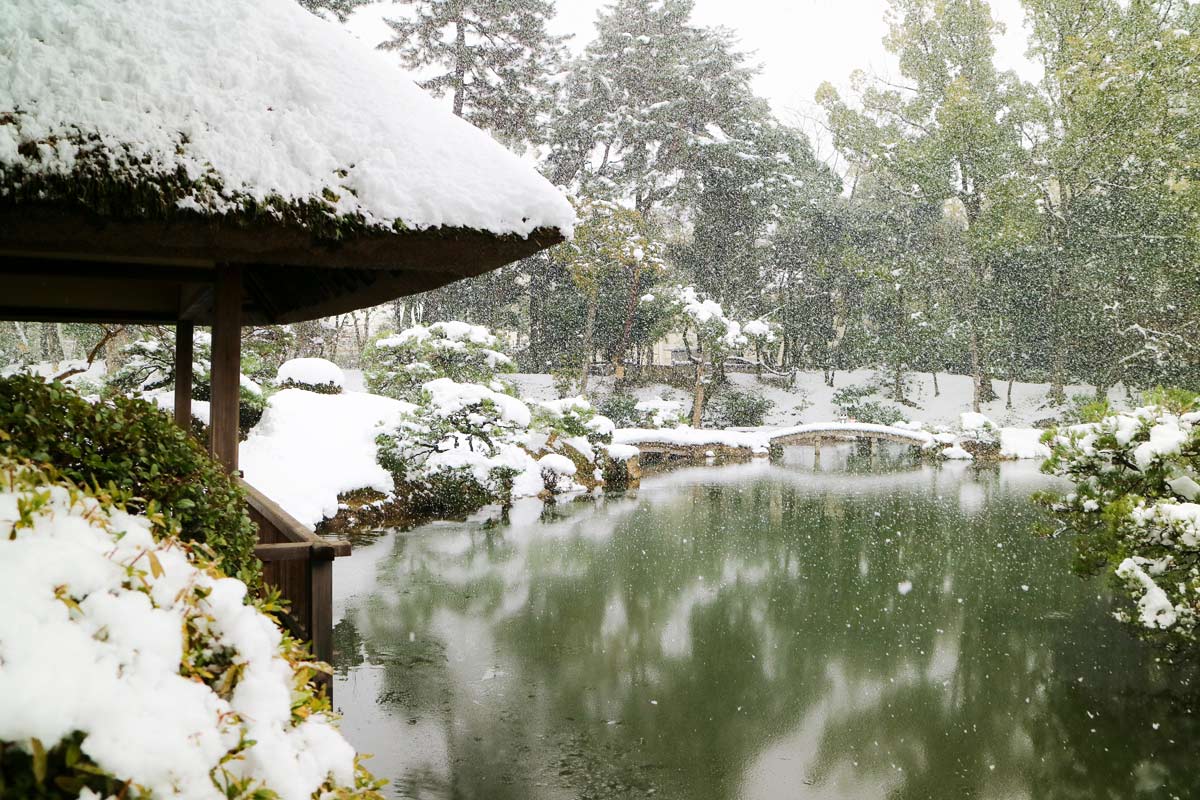 雪が舞い落ちる中、思い切って訪れた「縮景園」。