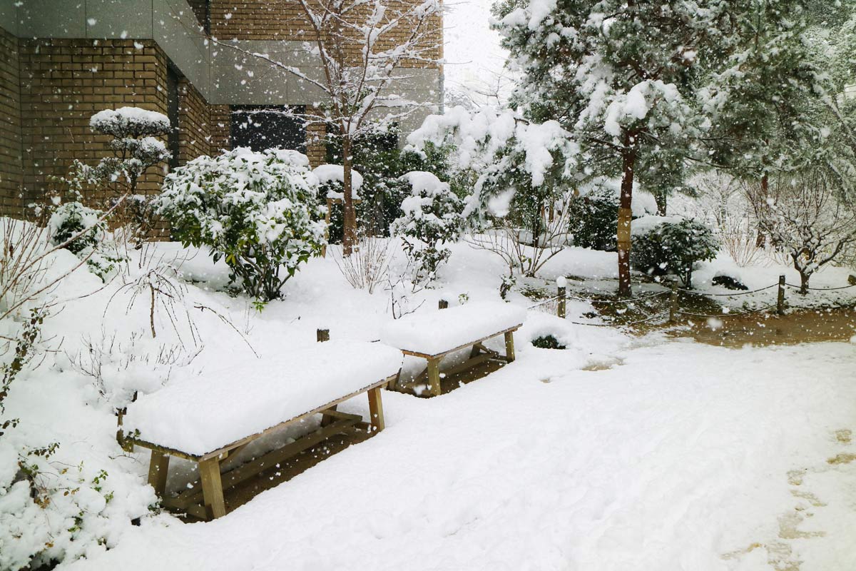 人間たちの休憩場所も、今日だけは雪たちの特等席だね~。