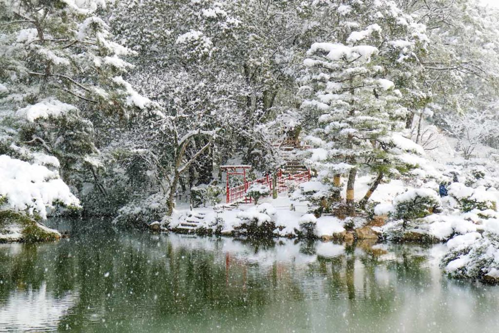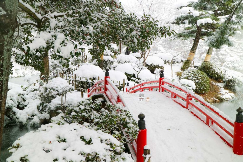 ここが絶好の撮影スポット!池や橋など趣のある和の冬景色を堪能