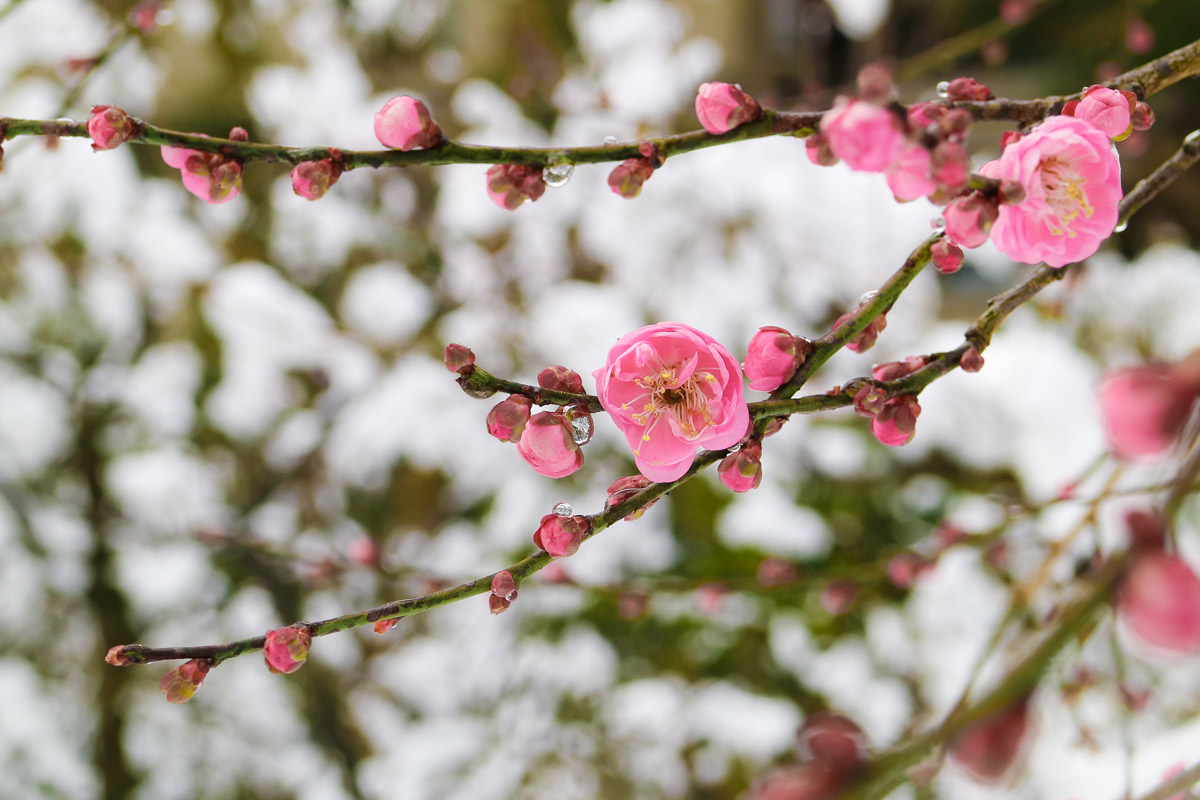新しい年をお祝いするかのように、ぽつりぽつりと小さな梅の花が咲いている。