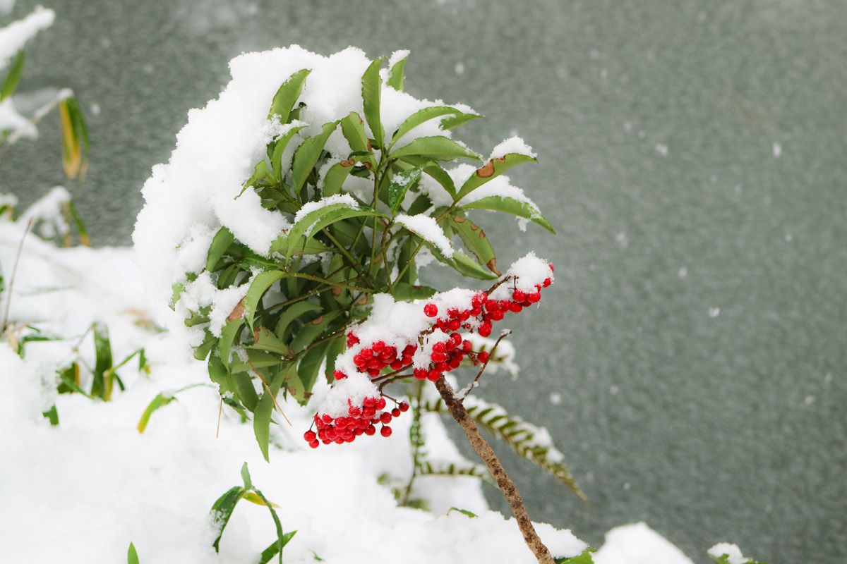 南天に雪うさぎも!冬ならではの風景からお気に入りを見つけよう