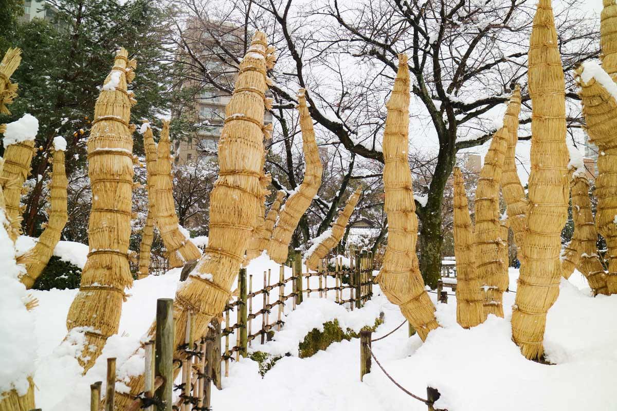 こちらも藁の囲いで、寒さや強風から大切に守られているね。