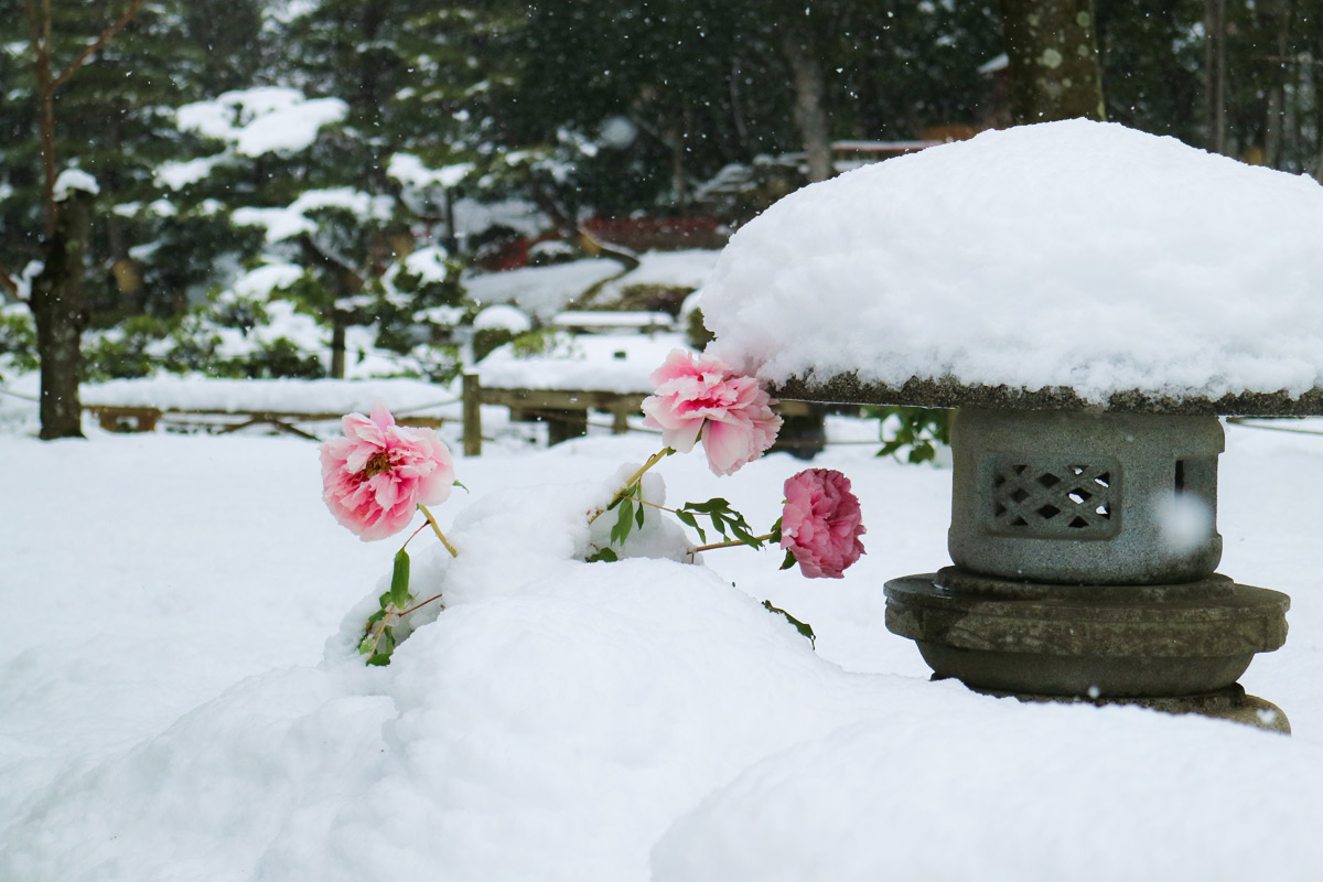 一方で、雪に埋もれながらも、健気に咲き誇るボタンも…!