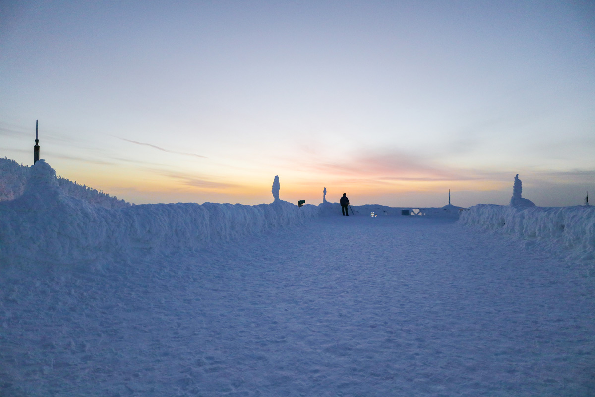 日が沈む少し前に来ると、樹氷のいろんな表情を見ることができるヨ!
