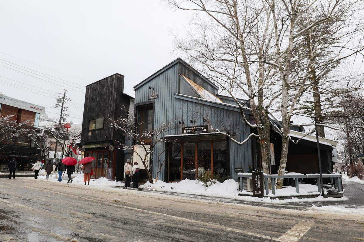 まず最初に訪れたのは、粗挽きの二八蕎麦がいただける「軽井沢 川上庵」の本店。